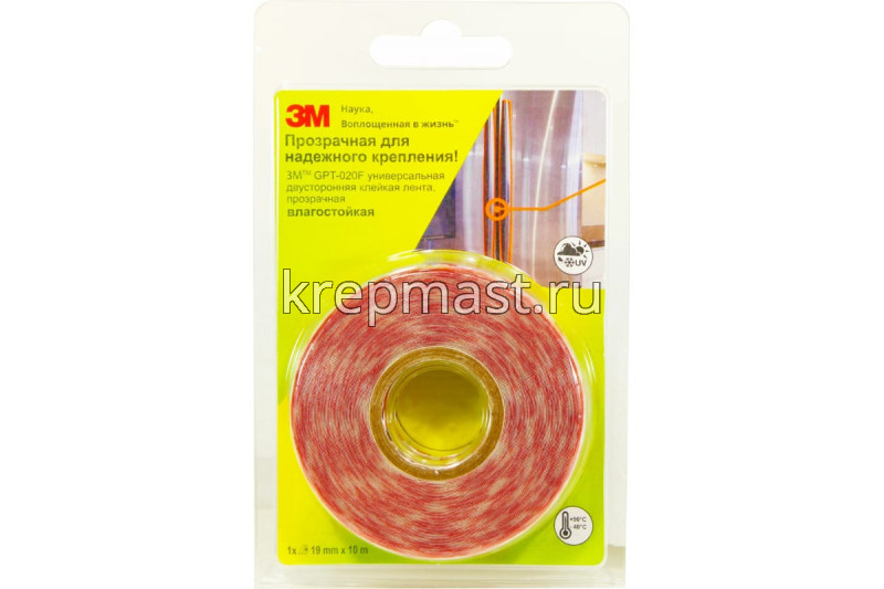 Двусторонняя лента на ПЭТ основе 3М прозрачная 19 мм х 10 м обладает высокой адгезией. С помощью двусторонней ленты можно соединять различные материалы, такие как: дерево, металл, стекло, бумагу, многие пластики и ткани. Изделие подходит для использования и внутри, и снаружи помещений.