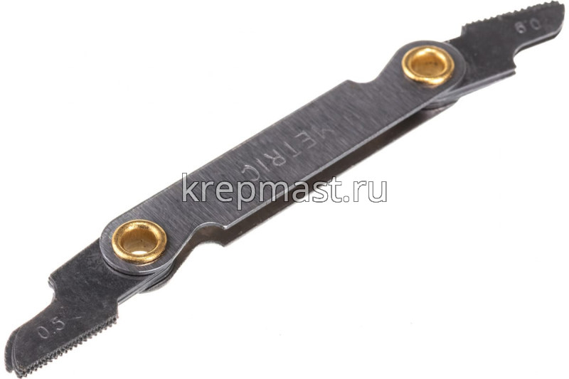 Шаблон для определения шага метрической резьбы (резьбомер) – инструмент, определяющий главные параметры резьбы. Используется для проверки точности метрической нарезки. Резьбомеры помогают быстро оценить точность выполненной нарезки и величину ее основных элементов.