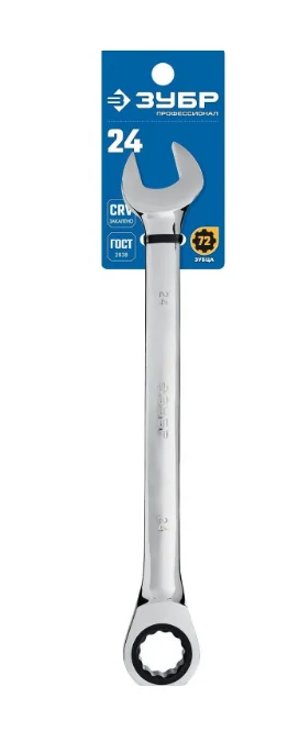 Комбинированный гаечный трещоточный ключ 24 мм Зубр позволяет вращать крепеж с минимальным углом 5 градусов.