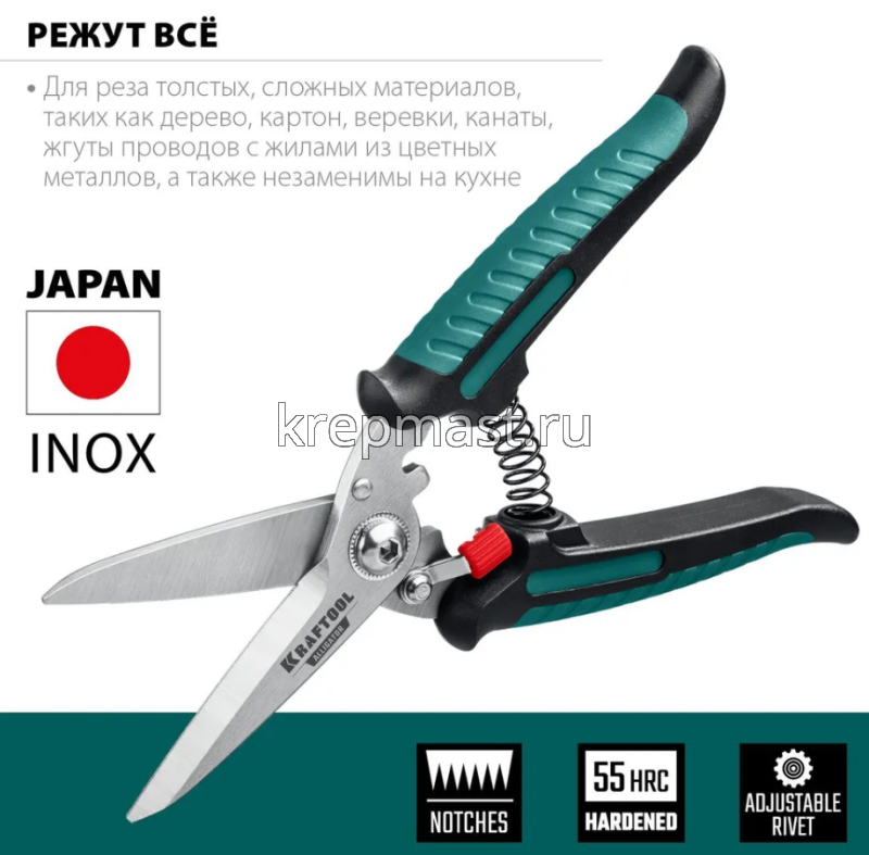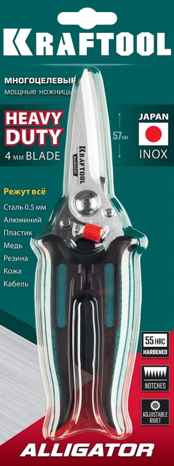 Ножницы KRAFTOOL многофункциональные прямые 200мм технические предназначены для бытового и профессионального использования. Рекордно быстро режет сложных материалов - стали, алюминия, пластика, меди, резины, кожи, проводов, электрических кабелей и др.