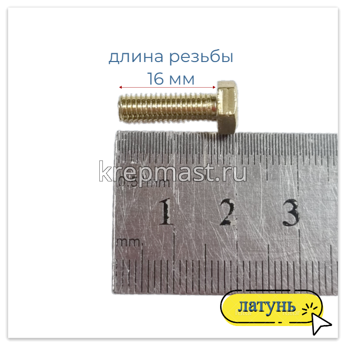 Болт 5х16 DIN 933 латунь в интернет-магазине «Мастер Крепежа» по цене 38 руб. Более 26 наименований товаров в наличии в категории Болты латунные DIN 933. Купить болт 5х16 din 933 латунь в Альметьевске выгодно Вы можете on-line на нашем сайте, или отправив заявку по почте, а также по телефону или в пункте выдачи компании г. Казань, ул. Татарстан, 9, магазин "Мастер Крепежа". Доставка по Республике Татарстан и другие регионы РФ.