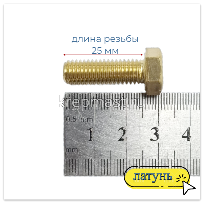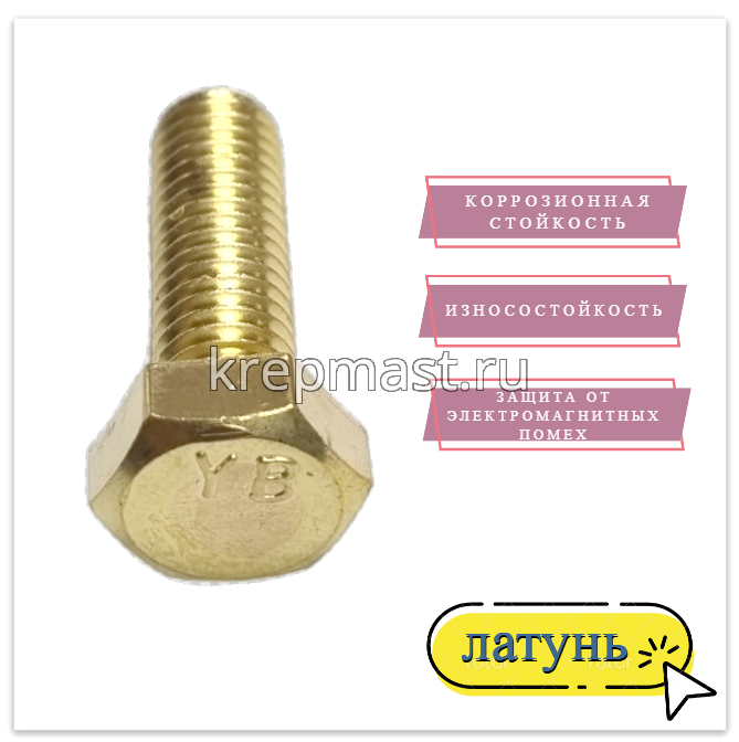 Болт 8х25 DIN 933 латунь в интернет-магазине «Мастер Крепежа» по цене 113 руб. Более 26 наименований товаров в наличии в категории Болты латунные DIN 933. Купить болт 8х25 din 933 латунь в Альметьевске выгодно Вы можете on-line на нашем сайте, или отправив заявку по почте, а также по телефону или в пункте выдачи компании г. Казань, ул. Татарстан, 9, магазин "Мастер Крепежа". Доставка по Республике Татарстан и другие регионы РФ.