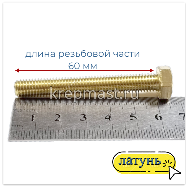 Болт 8х60 DIN 933 латунь в интернет-магазине «Мастер Крепежа» по цене 350 руб. Более 26 наименований товаров в наличии в категории Болты латунные DIN 933. Купить болт 8х60 din 933 латунь в Альметьевске выгодно Вы можете on-line на нашем сайте, или отправив заявку по почте, а также по телефону или в пункте выдачи компании г. Казань, ул. Татарстан, 9, магазин "Мастер Крепежа". Доставка по Республике Татарстан и другие регионы РФ.