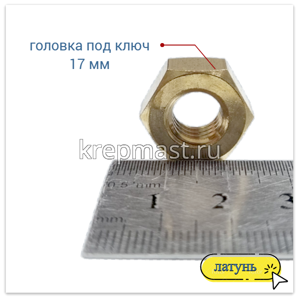 Гайка латунная не магнитится и служит для создания разъемных резьбовых соединений совместно с винтами, шпильками и болтами.