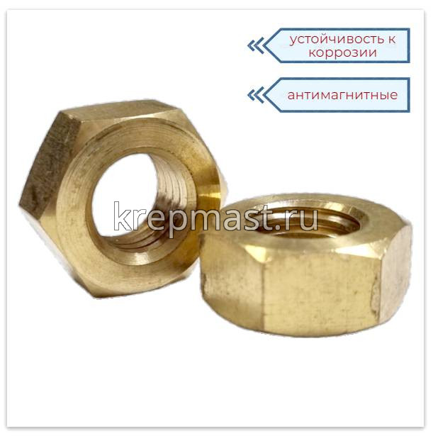 Шестигранная латунная гайка М 14 DIN 934/ ГОСТ 5927 применяется в приборостроении, авиации, атомной промышленности. Латунный крепеж стоек к органическим кислотам и углекислым растворам.
