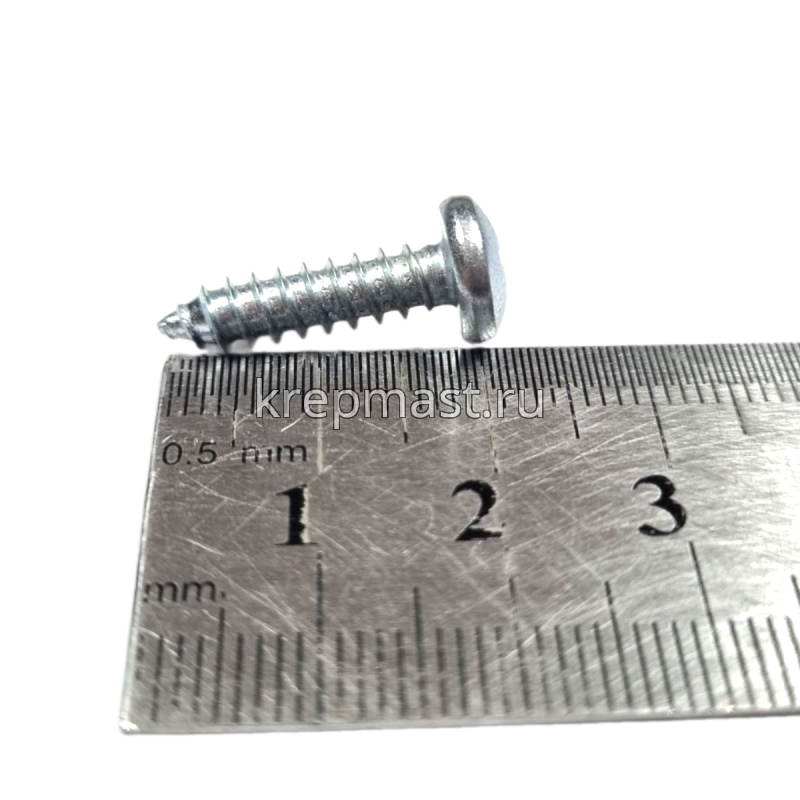Саморез по металлу с полусферической головкой и острым концом DIN 7981 4.8 x 19 применяется для крепления стальных и других листовых материалов (дерево, фанера) к металлическим и деревянным несущим конструкциям.