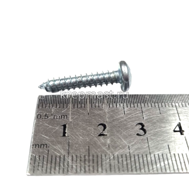 Саморез по металлу с полусферической головкой и острым концом DIN 7981 4.8 x 25 применяется для крепления стальных и других листовых материалов (дерево, фанера) к металлическим и деревянным несущим конструкциям.