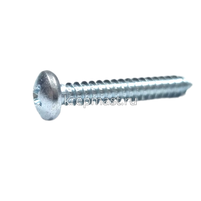 Саморез по металлу с полусферической головкой и острым концом DIN 7981 4.8 x 32 применяется для крепления стальных и других листовых материалов (дерево, фанера) к металлическим и деревянным несущим конструкциям.