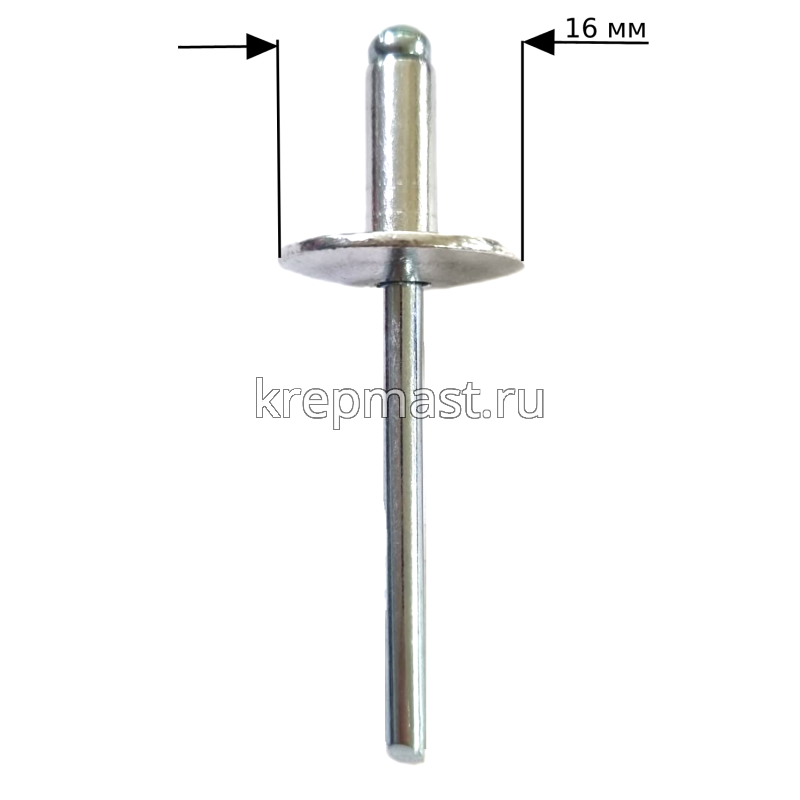 Заклёпка алюминий/сталь 4,8х 12х16 широкий борт - применяется для создания неразъемных соединений листовых металлов в машиностроении, приборостроении и строительных отраслях.