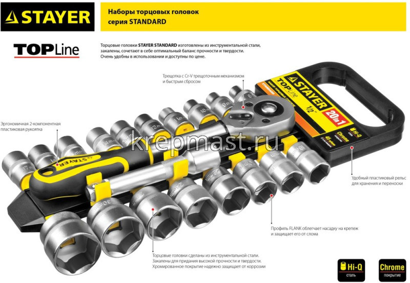 Набор STAYER головок торцевых 1/4" 12пред. в интернет-магазине «Мастер Крепежа» по цене 1700 руб. Более 14 наименований товаров в наличии в категории ГОЛОВКИ в наборе. Купить набор stayer головок торцевых 1/4" 12пред. в Альметьевске выгодно Вы можете on-line на нашем сайте, или отправив заявку по почте, а также по телефону или в пункте выдачи компании г. Казань, ул. Татарстан, 9, магазин "Мастер Крепежа". Доставка по Республике Татарстан и другие регионы РФ.