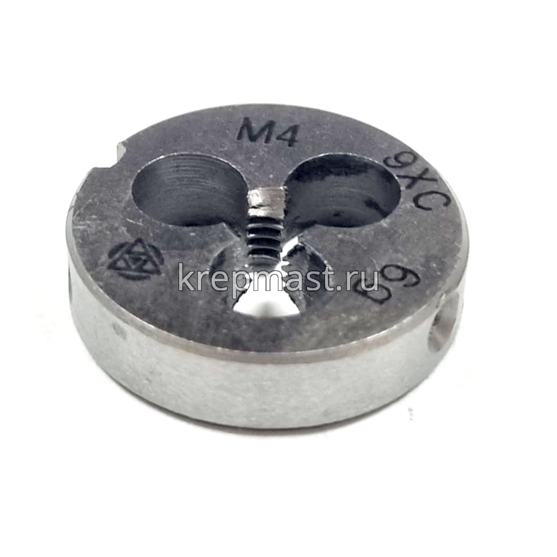 Плашка М4 х 0,7 мм круглой формы используется для нанесения резьбы на заготовку. Обладает высокими механическими свойствами, так как изготовлена из инструментальной стали.