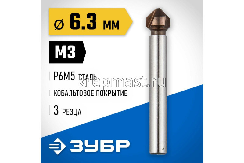Зенкер ЗУБР конус, цилиндр.хвост. 3мм(д.6,3х45мм) в Альметьевске