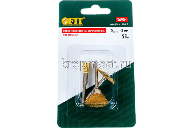 Стальные корщетки FIT IT набор 3шт. предназначены для гравировальной машинки. В наборе 3 шт. Предназначена для удаления ржавчины и шлифования. D хвостовика=3,1 мм.