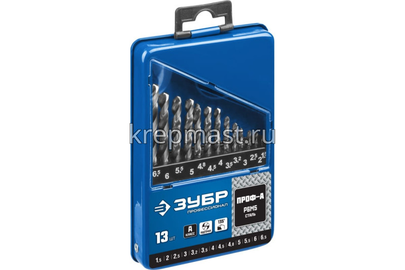 Набор сверел по металлу 13шт ЗУБР (1,5-6,5мм) металл.бокс в Альметьевске
