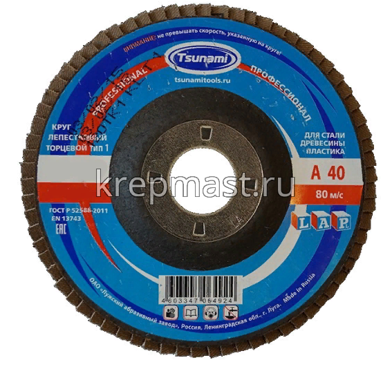 Диск лепестковый 125х22 Р-120 ЛУГА / TSUNAMI в интернет-магазине «Мастер Крепежа» по цене 134 руб. Более 23 наименований товаров в наличии в категории Диск лепестковый торцевой для УШМ пос.d=22,2. Купить диск лепестковый 125х22 р-120 луга / tsunami в Альметьевске выгодно Вы можете on-line на нашем сайте, или отправив заявку по почте, а также по телефону или в пункте выдачи компании г. Казань, ул. Татарстан, 9, магазин "Мастер Крепежа". Доставка по Республике Татарстан и другие регионы РФ.