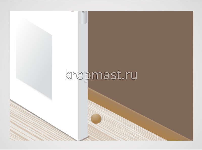 Ограничитель выполняет функцию упора, ограничивая ход двери и предотвращая повреждение стен или дверной коробки.